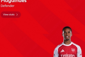 6次解围,英超官方:加布里埃尔当选阿森纳1-0水晶宫全场最佳