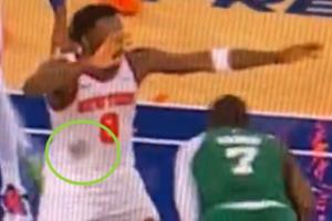 发际线粉蹭掉了!杰伦-布朗的头一通乱蹭 OG球衣一大团黑