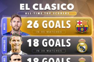 梅西26球领跑国家德比历史射手榜 小熊6球领跑国家德比现役射手榜