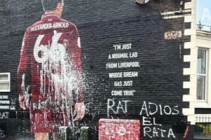 英媒晒视频:被污损的阿诺德的壁画已被清洗干净