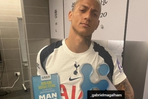 赛后,理查利森在个人社媒晒了他领取全场最佳球员的照片,并标记了阿森纳后卫加布里埃尔。随后,加布里埃尔更新社媒,晒出自己3次拿到英超北伦敦德比全场最佳的奖杯予以回击,他也艾特了理查利森。