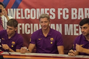 体育资讯8月2日讯 据韩媒报道,炸鸡连锁企业BBQ集团于昨日下午在位于首尔清溪广场的BBQ Village举办了巴萨球员莱万、佩德里、费尔明的球迷签名会。