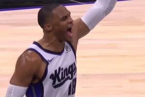 年轻五岁就扣了!威少杀入篮下顶着两人抢到进攻板 单手补进篮筐