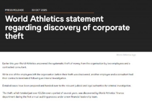 谁干的?世界田联发文,公司遭遇三名员工窃取150多万欧元