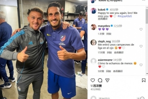 体育资讯8月10日讯 季前友谊赛,马竞以2-0的比分战胜纽卡。本场比赛,马竞旧将特里皮尔为纽卡首发出战。赛后,马竞队长科克晒出了两人的合影。