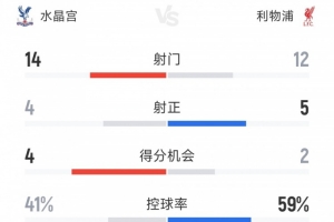 体育资讯8月11日讯 在社区盾杯决赛,利物浦与水晶宫90分钟战成2-2,双方将进行点球大战。以下为双方比赛数据对比: