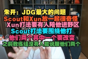 朱开:JDG最大的问题,Scout和Xun放一起很奇怪,Xun打法要有人陪他进野区,Scout要围绕他打,他们两个其中一个要改变,教练组没有人能说服他们两个.