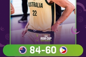 体育资讯8月13日讯 今日男篮亚洲杯八强赛,澳大利亚84-60大胜菲律宾,轻松晋级四强!