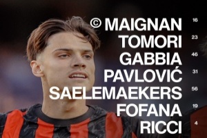 米兰首发:16-迈尼昂、31-帕夫洛维奇、46-加比亚、23-托莫里、2-埃斯图皮尼安、19-福法纳、4-里奇、8-奇克、56-萨勒马科尔斯、11-普利西奇、10-莱奥