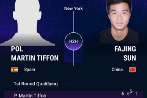 孙发京收获大满贯资格赛首胜,晋级美网男单资格赛第二轮。