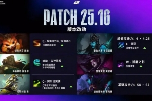 体育资讯8月19日讯 lpl官方发布了25.16版本的英雄改动,具体如下: