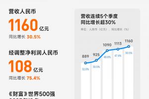 -营收 1160 亿元同比增长 30.5%(上年同期 888.9 亿元)创历史新高。