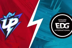 【9:16】UP四人上路推掉EDG一塔,随后Zdz兰博下路推塔,1jiang安蓓萨来下赶走Zdz。