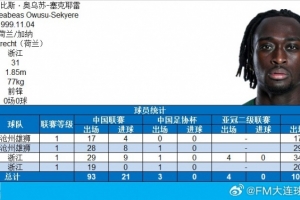 体育资讯8月21日讯 据博主“FM大连球队调查员”统计,浙江队外援奥乌苏完成了代表中国俱乐部各项职业赛事100场里程碑。