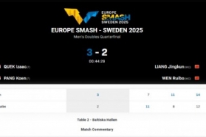 体育资讯8月22日讯 WTT欧洲大满贯瑞典站男双1/4决赛,中国组合梁靖崑/温瑞博以2-3的大比分不敌新加坡组合郭勇/冯耀恩,无缘四强。