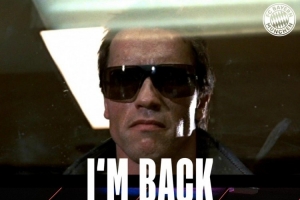 拜仁官方社媒晒出带有6-0比分牌的终结者主题海报,配文:“I'M BACK。”