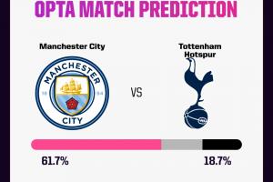 体育资讯08月23日讯 今晚19:30,英超第2轮焦点战曼城vs热刺。曼城首轮4-0战胜狼队,而热刺3-0战胜伯恩利,此役瓜迪奥拉确认罗德里、福登可以出战,本轮谁能争得两连胜?Opta超级计算机预测,曼城的胜率为61.7%。