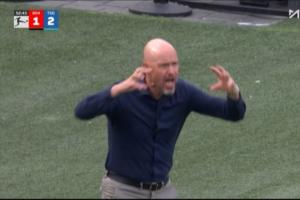 体育资讯08月23日讯 德甲首轮,勒沃库森vs霍芬海姆,比赛第53分钟,霍芬海姆再入一球,勒沃库森连丢两球1-2遭反超,主帅滕哈赫在场边非常不满。