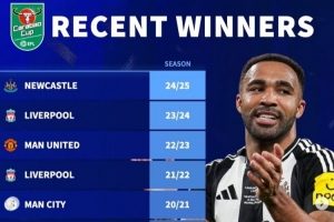 德转列近10年联赛杯冠军:曼城6年5冠+4连冠,曼联利物浦各2冠