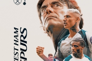 热刺官方社媒发布了为此役制作的海报,主帅弗兰克携理查利森、范德文、库杜斯出镜。