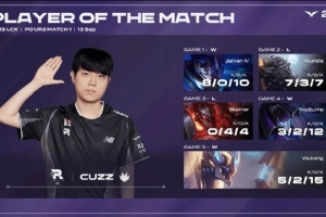 体育资讯9月13日讯 Cuzz当选KTvsGEN比赛POM,使用英雄分别是皇子/巨魔/蝎子/魔腾/猴子。