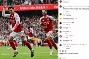 梅里诺赛后也在个人社媒晒出与苏维门迪庆祝的照片,配文写道:“3粒进球,拿下3分,现场氛围太棒了!我们的中场球员最近都怎么了?!祝贺苏维门迪梅开二度!下一站毕尔巴鄂,加油!”