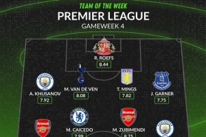 后卫:胡桑诺夫(曼城,7.92分)、范德文(热刺,8.08分)、明斯(阿斯顿维拉,7.82分)、詹姆斯-加纳(埃弗顿,7.75分)