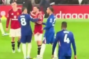 在比赛中,恩佐成为多次与曼联球员冲突的焦点,比赛中他被拍到与卢克-肖争执。此前在上赛季交锋时,恩佐就曾与蓝军旧将芒特发生过口角,而这对冤家在周六赛后似乎重燃战火。