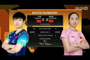 蒯曼大比分2-3不敌申裕斌,无缘中国大满贯女单八强