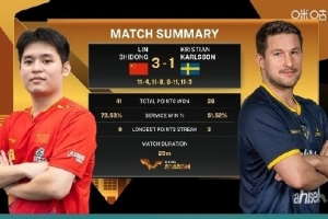 林诗栋3-1击败卡尔森,晋级中国大满贯男单八强,下轮对宇田幸矢