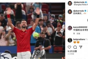欢迎回来!晋级上海大师赛次轮后小德用中文发社媒:回来真好