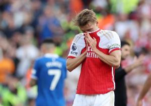 体育资讯10月4日讯 在本轮英超阿森纳对阵西汉姆的比赛中,厄德高上半场因伤被换下。