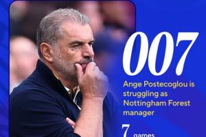 森林主帅波斯特科格鲁执教球队前7场,实现了7场0胜0零封的战绩。