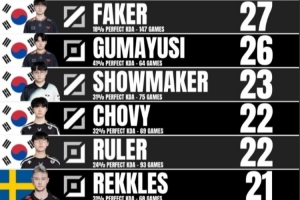 3.Showmaker:75场/23场完美KDA 31%0死率