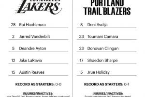 雷迪克被迫变阵!湖人首发:里夫斯/拉拉维亚/八村塁/范德彪/艾顿