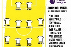 体育资讯10月11日讯 切尔西旧将米克尔近日评出了他心目中的英超历史最佳11人阵容,效力蓝军期间,米克尔两次捧起英超冠军。