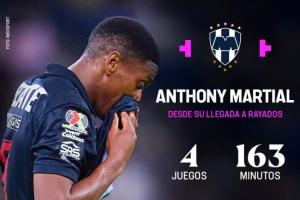 TNT统计了球员在蒙特雷的数据,马夏尔出场4次总计163分钟,没有获得进球或者助攻。