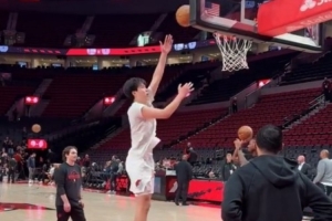 杨瀚森假传真投三分球!开拓者官推:他甚至把摄像头都晃飞了