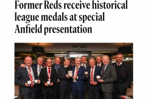体育资讯10月16日讯 利物浦俱乐部近日在安菲尔德举行了一场特别的颁奖仪式,向14名前球员颁发了联赛冠军奖牌,以表彰他们为球队历史上的20座顶级联赛冠军所做出的贡献。由于当时足球联盟的出场次数资格限制,这些球员在当年遗憾地错过了获得奖牌的机会。