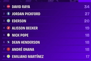 体育资讯10月19日讯 据统计,阿森纳门将拉亚自2023/24赛季加盟球队以来,在英超联赛中的表现极具统治力。