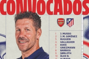 体育资讯10月20日讯 北京时间10月22日凌晨,马竞将在欧冠联赛阶段第三轮比赛中客场对阵阿森纳,马竞公布了此役的球员名单,阿尔瓦雷斯、格列兹曼在列,卡尔多索继续缺席。