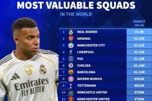 体育资讯10月20日讯 德转统计了最新的俱乐部身价榜,其中,皇马以14亿欧高居榜首,阿森纳、曼城分列二、三,共7支球队突破10亿欧。
