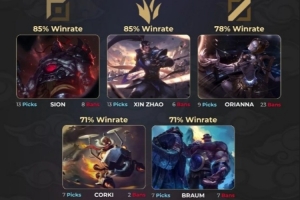 S15世界赛各位置胜率最高英雄:上野赛恩赵信85%;中发条78%