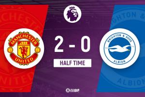 半场-曼联暂2-0布莱顿 胖虎传射库尼亚红魔首球裁判判罚引争议