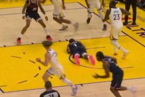 略显尴尬!库里弧顶单打出手三分空气球直接飞出界外