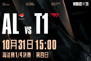 体育资讯10月31日讯 2025全球总决赛淘汰赛1/4决赛焦点之战,由AL对阵T1!