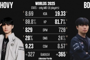 Chovy与Bdd数据对比:Chovy分均输出与伤害占比均更高