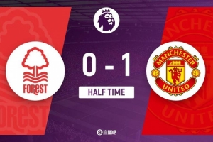 半场-诺丁汉森林0-1曼联 卡塞米罗头球破门道格拉斯-路易斯伤退