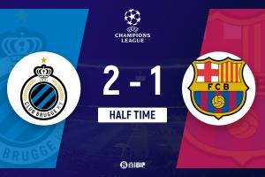 半场-巴萨暂1-2布鲁日 费兰-托雷斯破门博尔赫斯传射