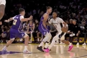 马刺湖人裁判报告:马刺最后0.04秒误获球权 球由凯尔登碰出底线